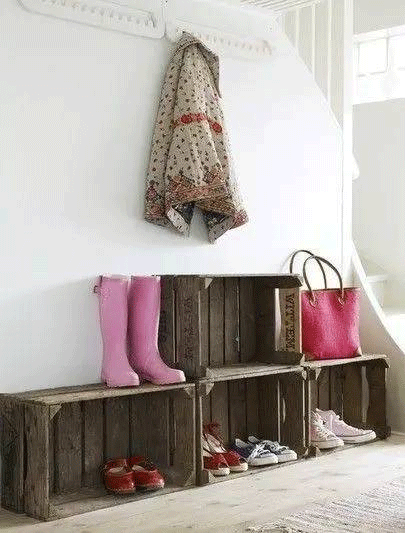 ▼木箱装着鞋上墙系列,充分利用空间~