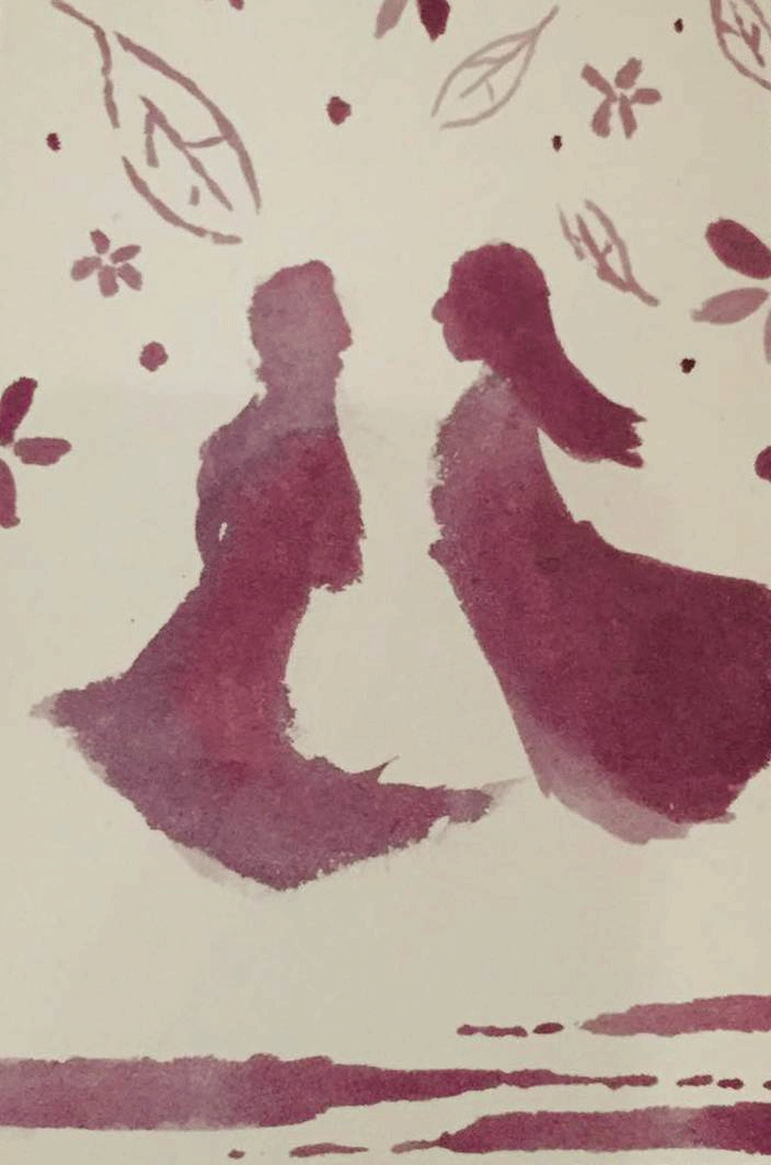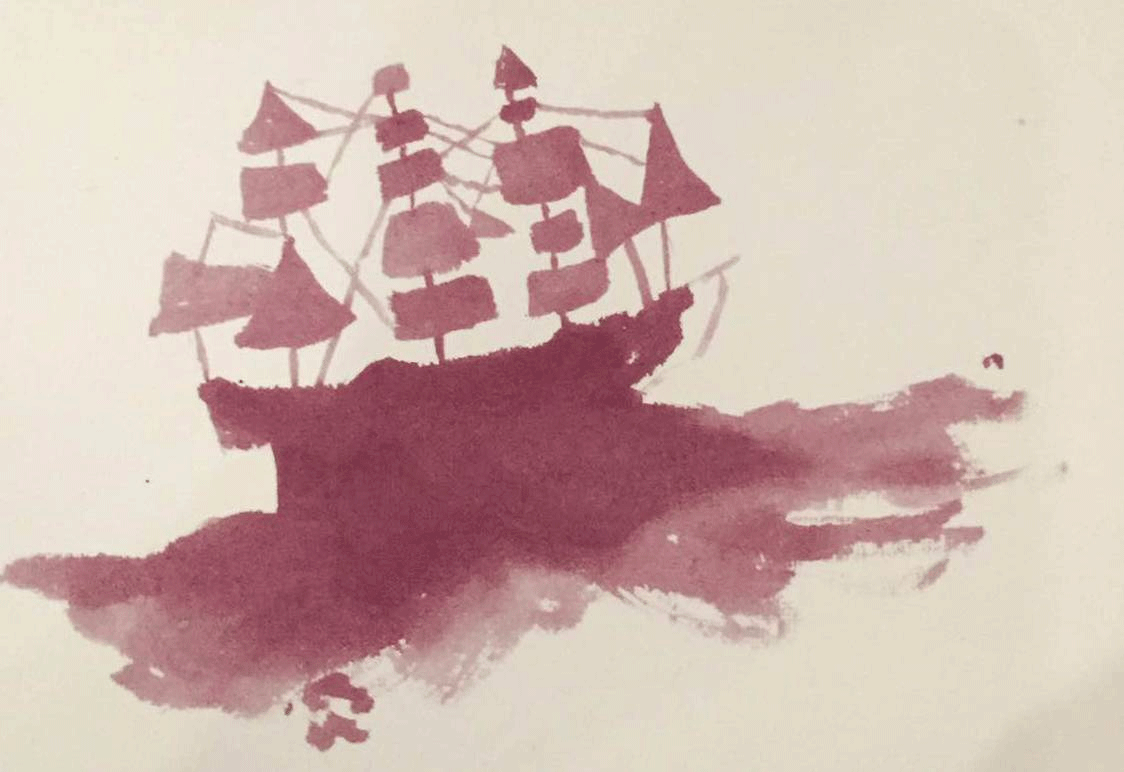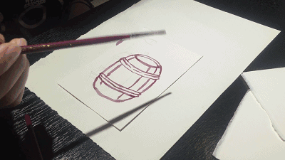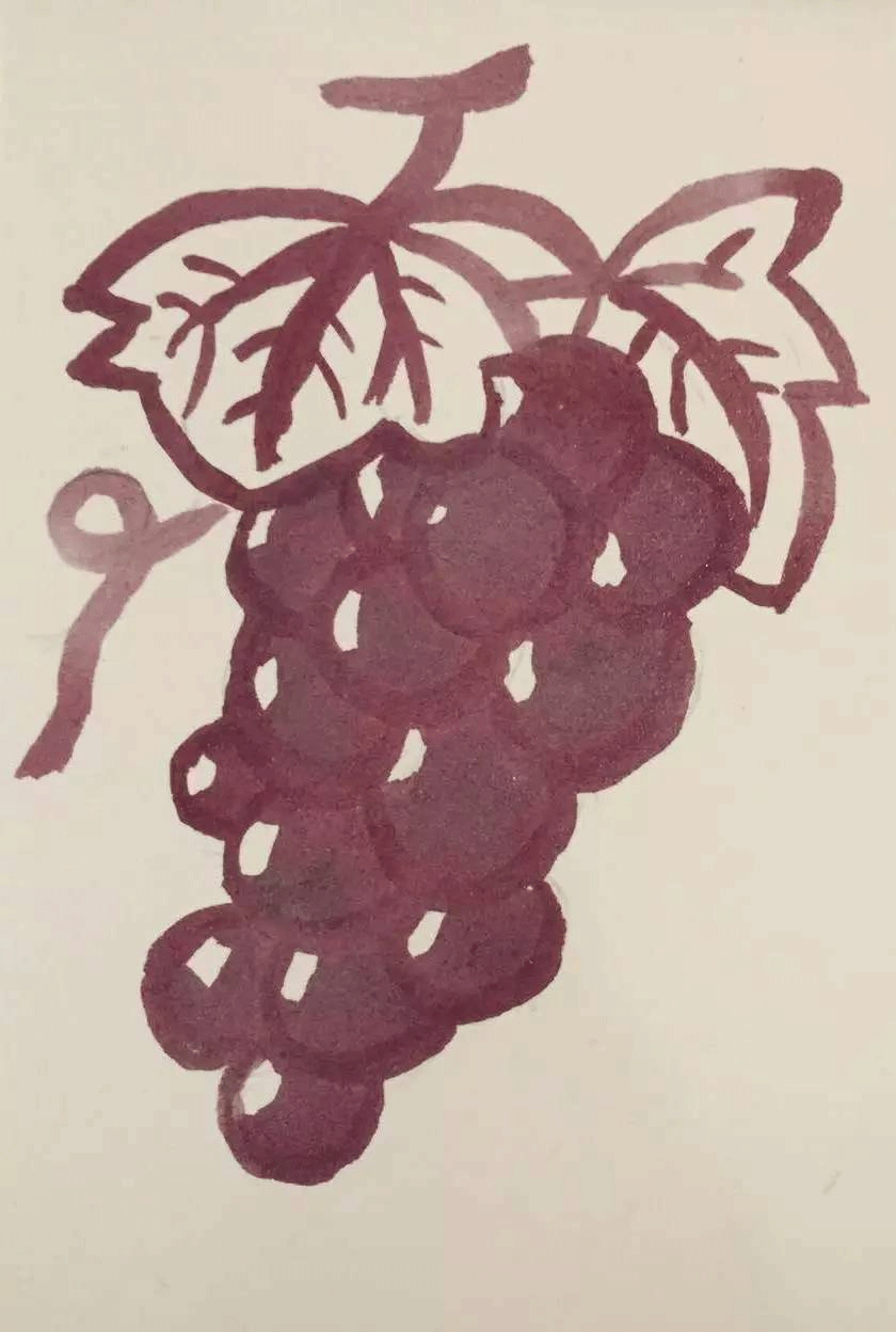 ②在纸上用铅笔勾勒出你的草稿,然后用大号的刷子蘸没浓缩过的葡萄酒为你的草稿打底